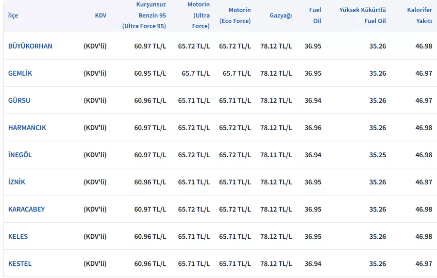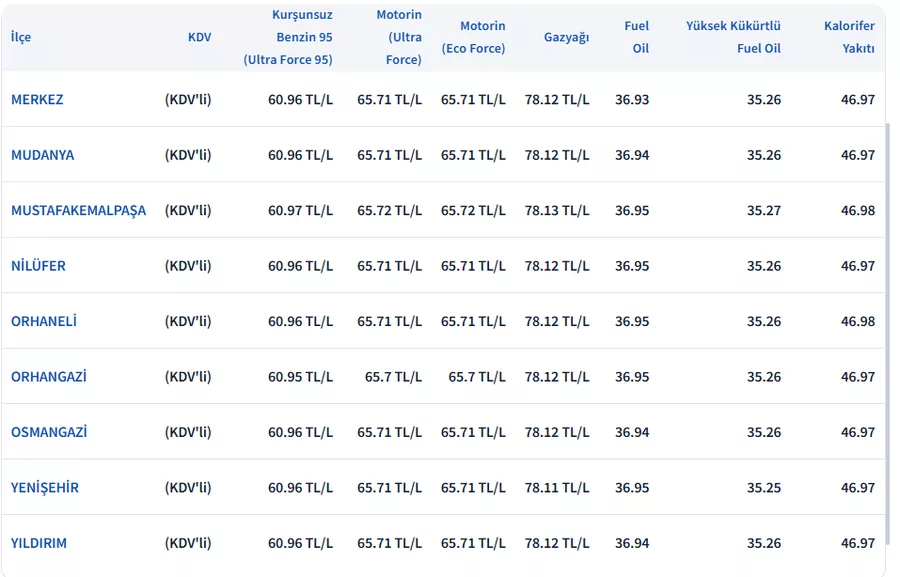 Bursa'da fiyatlar...