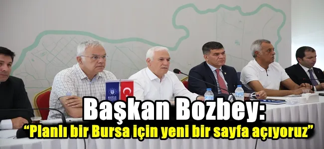 Bursa’nın geleceğiyle ilgili yeni bir sayfa açtıklarını ifade eden Büyükşehir Belediye Başkanı Mustafa Bozbey, gelecek nesillere daha yaşanabilir bir kent aktarmak istediklerini söyledi. Bursa’nın geçmişte planlama süreçlerinin iyi yönetilemediğine dikkat çeken Başkan Bozbey, “Bursa, sadece Türkiye'nin değil dünyanın en önemli kentlerinden bir tanesi. Ancak planlama süreçlerini iyi yönetememiş maalesef. Bursa'nın mevcut halini oluşturmuş bir geçmişimiz var. Ama şimdi yeni bir sayfa açıyoruz. Bu sayfayla birlikte Bursa, Bursa çevresi ve Marmara Bölgesi’yle bütüncül bir anlayışı ortaya koyup planlama ajansımızla birlikte Bursa'da yaşayan herkesin gelecekle ilgili hem güvenli bir kentte, hem huzurlu bir kentte, hem de yeşil bir kentte çocuklarıyla, sevdikleriyle, mutlu, huzurlu olabilecek nitelikte bir planlama devresine bugün itibariyle başlıyoruz. Bursalılara da zaten sözümüz vardı. Yeşil, yemyeşil bir Bursa'yı hayal ediyoruz. İnsanların güvenle bir yerden bir yere ulaştığı, aynı zamanda sağlıklı bir yapıda olan kentte oturmaları gerektiğine inanıyoruz ve bunu da istiyoruz. Şimdi artık tam zamanı diyor ve süreci başlatıyoruz” ifadelerini kullandı.
