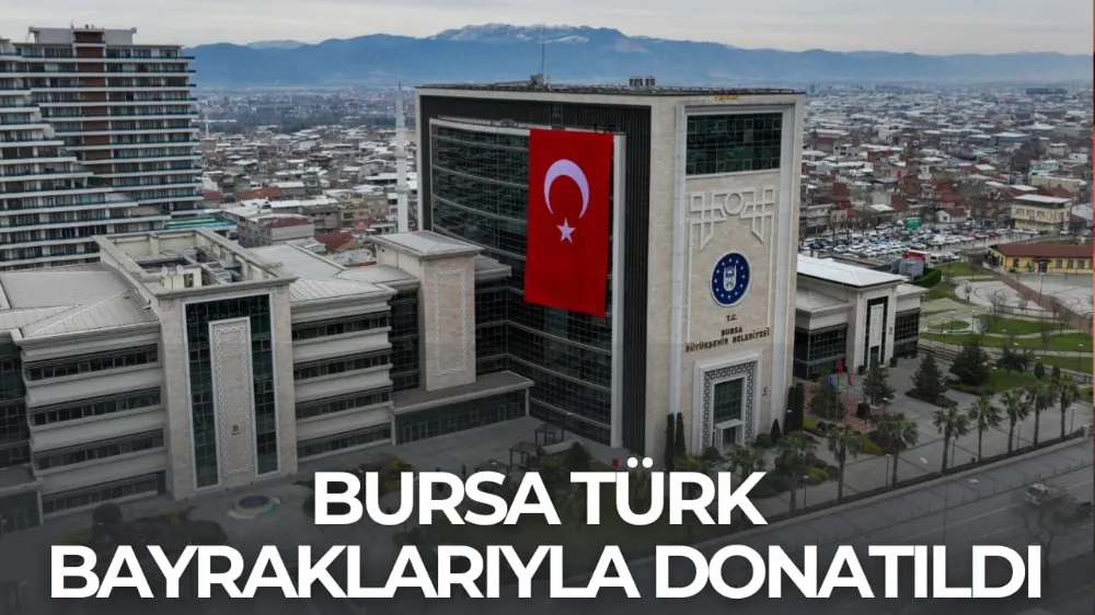 Bursa Büyükşehir Belediye Başkanı Mustafa Bozbey’in talimatıyla belediye binaları, BursaRay istasyonları, belediye otobüsleri ve otoparklar dahil olmak üzere kuruma ait tüm alanlar ay yıldızlı bayraklarla donatıldı.