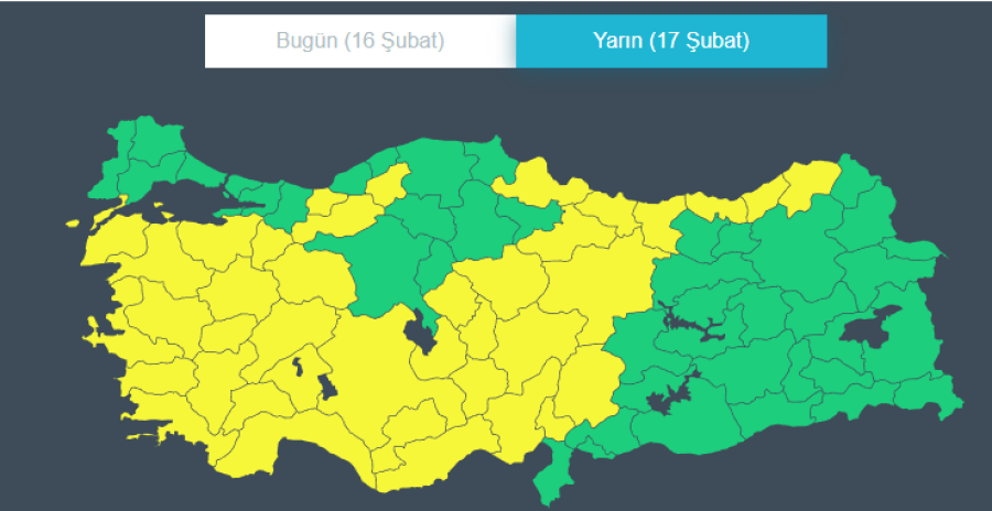 MGM'den yapılan açıklamada "Güney yönlerden kuvvetli rüzgar ve fırtına (50-70 km/saat, yer yer 80 km/saat) beklendiğinden ulaşımda aksamalar, çatı uçması, soba ve doğalgaz kaynaklı zehirlenmeler gibi olumsuzluklara karşı dikkatli ve tedbirli olunmalıdır." ifadeleri yer aldı.