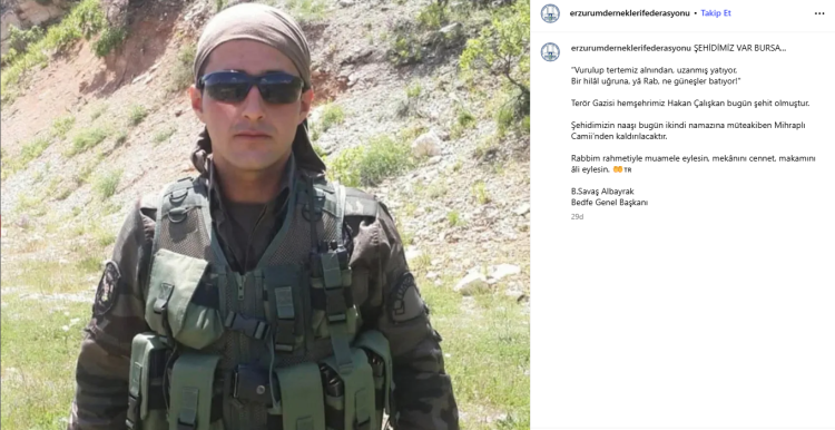 Şehit Hakan Çalışkan için bugün ikindi namazına müteakip Bursa Dikkaldırım Mahallesi’ndeki Mihraplı Camii’nde cenaze namazı kılınacak.