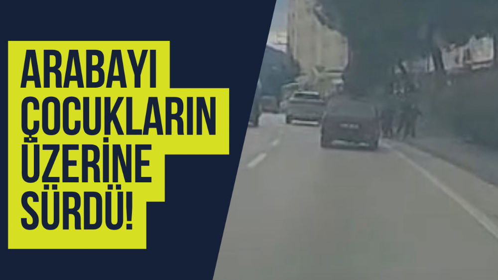 Ölümle burun buruna gelen çocuklar panikle kaçışırken, sürücünün hiçbir şey olmamış gibi yoluna devam etmesi tepki çekti. Korku dolu anlar kameraya yansıdı.
