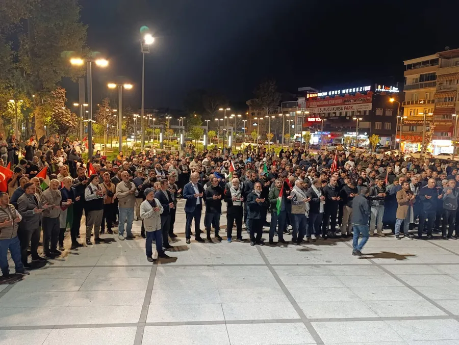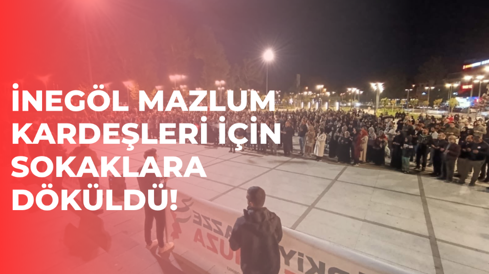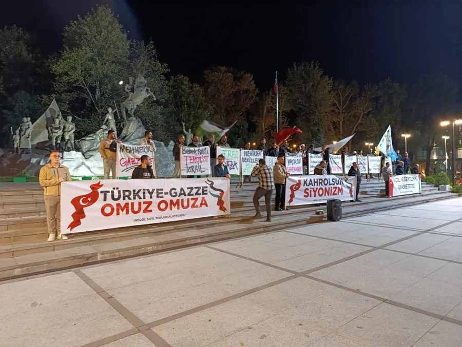 İnegöl’de vatandaşlar, insani yardım amacıyla yola çıkan Global Sumud filosuna yönelik engellemeyi protesto etmek için sokaklara çıktı.