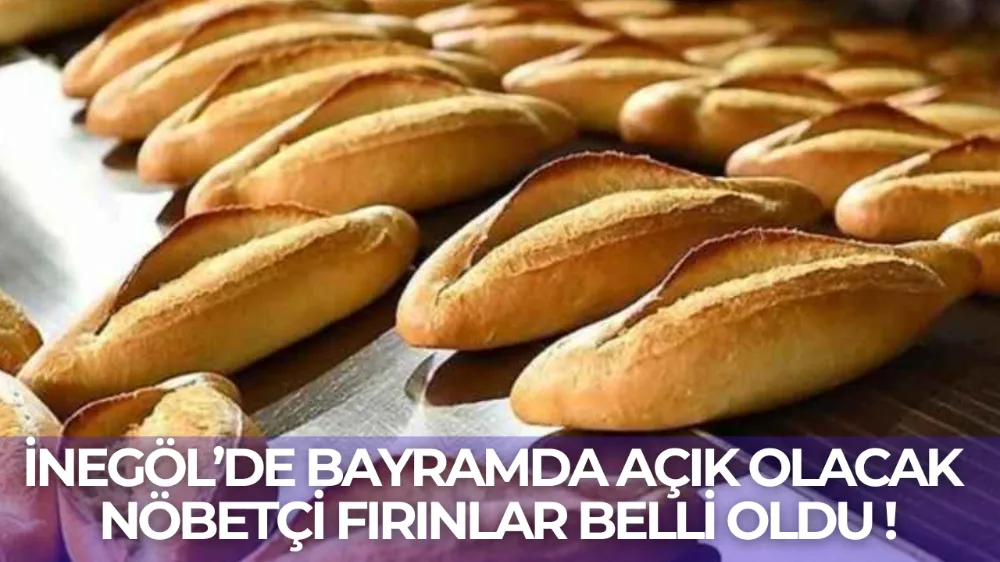 İnegöl Belediyesi’nden konuya ilişkin yapılan açıklamada şu ifadelere yer verildi: “Fırıncılar Odası ile yaptığımız istişareler neticesinde bayram süresince fırınların kapalı olması kararlaştırılmıştır. Ancak vatandaşlarımızın mağduriyet yaşamaması adına ekmek ihtiyacını karşılayabilmek için 3 gün boyunca nöbetçi fırın uygulamasına gidilecektir. Nöbetçi olarak hizmet verecek fırınlar ise Fırıncılar ve Benzerleri Odası tarafından belirlenmiştir.”