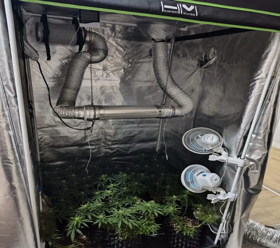 17 kök, yaklaşık 45 santimetre boyunda, üretim aşamasında esrar bitkisi,