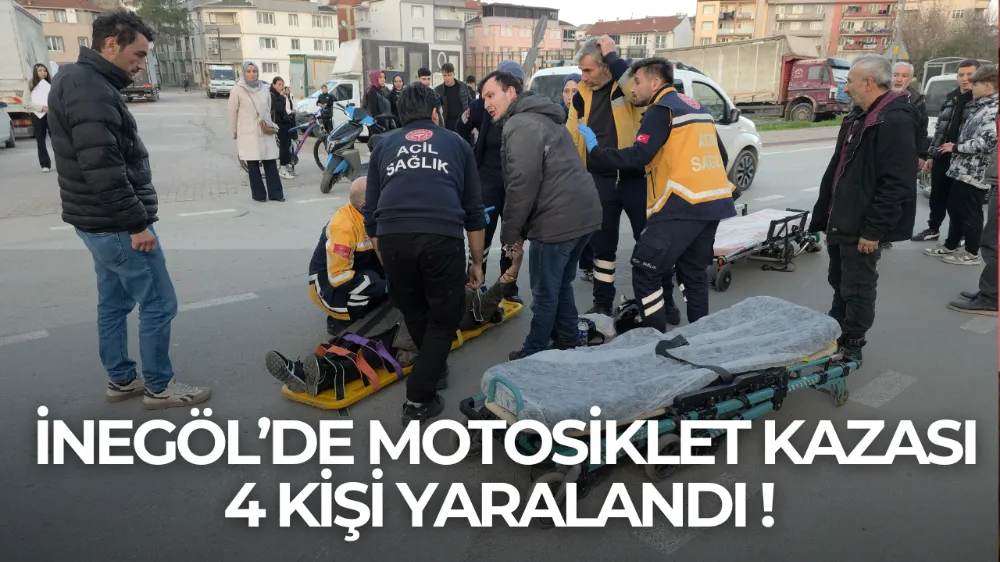 16 BDK 135 plakalı motosiklet ile 16 BSM 986 plakalı motosikletin çarpışmasıyla meydana gelen kazanın ardından çevredekiler durumu 112 Acil Sağlık ekiplerine bildirdi. Olay yerine hızla gelen sağlık görevlileri, yaralılara ilk müdahaleyi kaza yerinde yaptı. Ardından yaralılar ambulanslarla İnegöl Devlet Hastanesi Acil Servisi’ne sevk edilerek tedavi altına alındı.