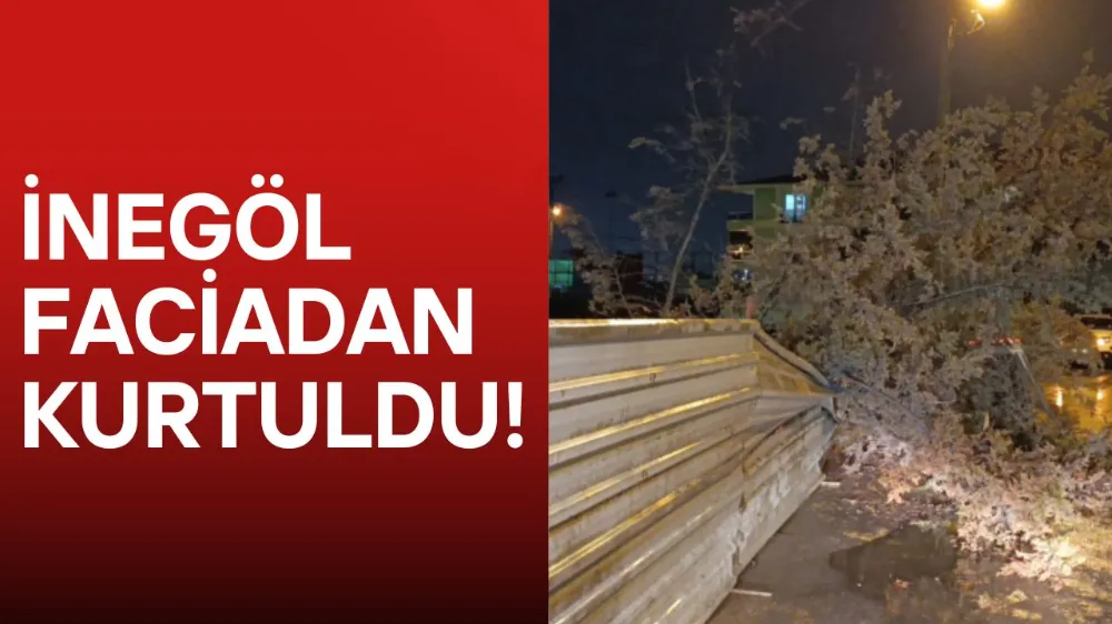 İnşaat alanında bulunan ağaç, yağış ve rüzgarın etkisiyle aniden kökünden çıkarak sokağa devrildi. Ağacın devrilmesiyle birlikte çevrede büyük bir gürültü oluştu. Gürültüyü duyan vatandaşlar durumu 112 Acil Çağrı Merkezi'ne bildirdi. İhbar üzerine olay yerine polis ekipleri sevk edildi. Polis ekipleri çevrede güvenlik önlemleri alırken, İnegöl Belediyesi ekiplerine haber verildi. Belediye ekipleri tarafından devrilen ağaç kısa sürede yoldan kaldırıldı.