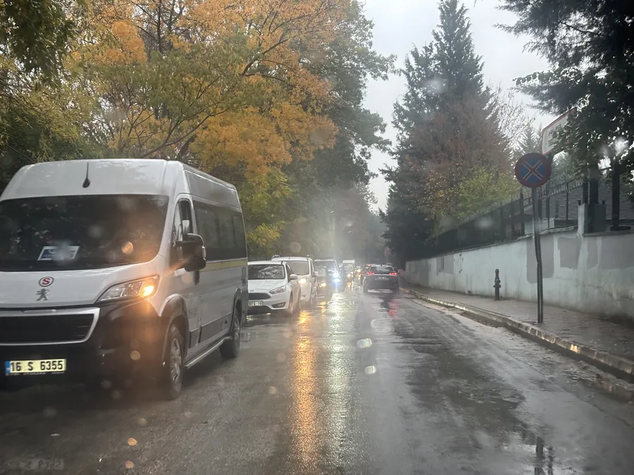 Yoğun yağışın etkisiyle trafik akışı tamamen durma noktasına geldi. Araçlarından çıkamayan sürücüler uzun süre beklerken, korna sesleri cadde boyunca yankılandı.