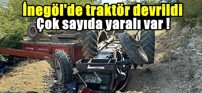 İnegöl'de traktör devrildi 6 kişi yaralandı !