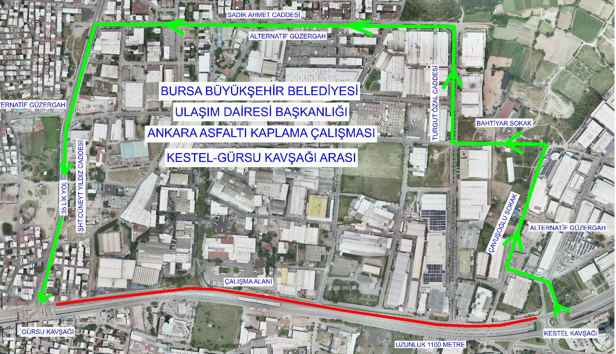 Bursa Büyükşehir Belediyesi tarafından yapılacak asfalt yenileme çalışmaları kapsamında Bursa – Ankara yolu Bursa geliş istikameti Gürsu Kavşağı ile Kestel Kavşağı arası 1 Eylül Cuma (BUGÜN) günü saat 23.00'dan 02 Eylül Cumartesi (YARIN) günü saat 06.00'a ve 02 Eylül Cumartesi (YARIN) günü saat 23.00'dan 03 Eylül Pazar günü saat 11.00'a kadar trafiğe kapatılacaktır. Çalışma süresince sürücülerin alternatif güzergahları kullanmaları gerekmektedir.