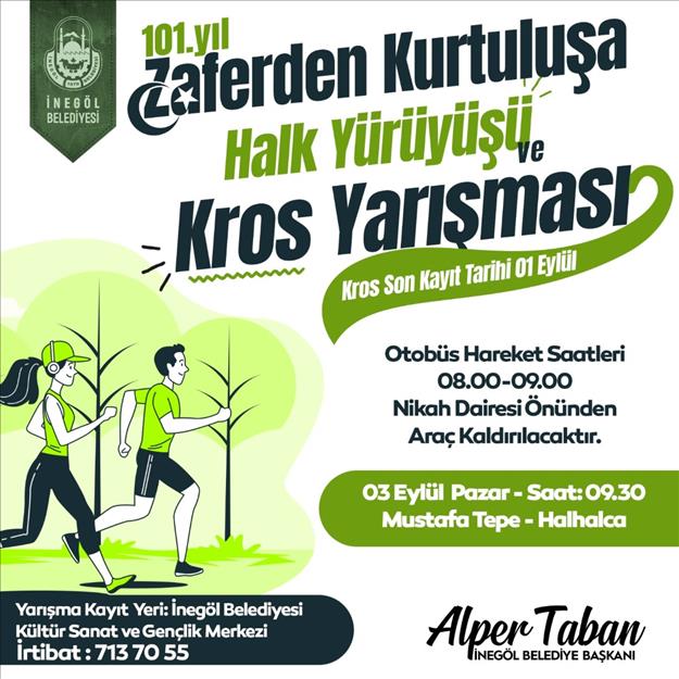 İnegöl Belediyesi, 6 Eylül İnegöl’ün düşman işgalinden kurtuluşunun 101. Yılı etkinliklerini düzenleyeceği etkinliklerle kutlayacak. Bu kapsamda geçtiğimiz yıl ilk kez düzenlenen halk yürüyüşü ve kros yarışması bu yıl da gerçekleştirilecek. Yunanlıların İnegöl’ü işgali sırasında ele geçirdiği ve İnegöl’ün düşman işgalinden kurtuluşu sonrası 9 Eylül’de yeniden kurtarılan Mustafatepe’den Halhalca Şehitliğine kadar olan 4 km’lik mesafede vatandaşların katılımıyla yapılacak halk Yürüyüşü ve kros yarışması için kayıtlar başladı.