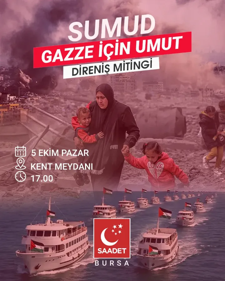 Saadet Partisi İnegöl İlçe Başkanı Ahmet Yıldız, Gazze’de yaşanan insanlık dramına dikkat çekmek amacıyla düzenlenecek olan “Gazze İçin Umut – Direniş Mitingi” için çağrıda bulundu.