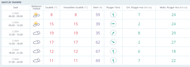 Hava sıcaklığının öğle saatlerinde 19 dereceye kadar yükselmesi, akşam saatlerinde 12 dereceye düşmesi, gece saatlerinde ise 11 dereceye kadar gerilemesi bekleniyor.