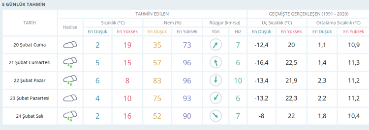 İŞTE BURSA İÇİN 5 GÜNLÜK HAVA DURUMU TAHMİNİ (20 ŞUBAT 2025)