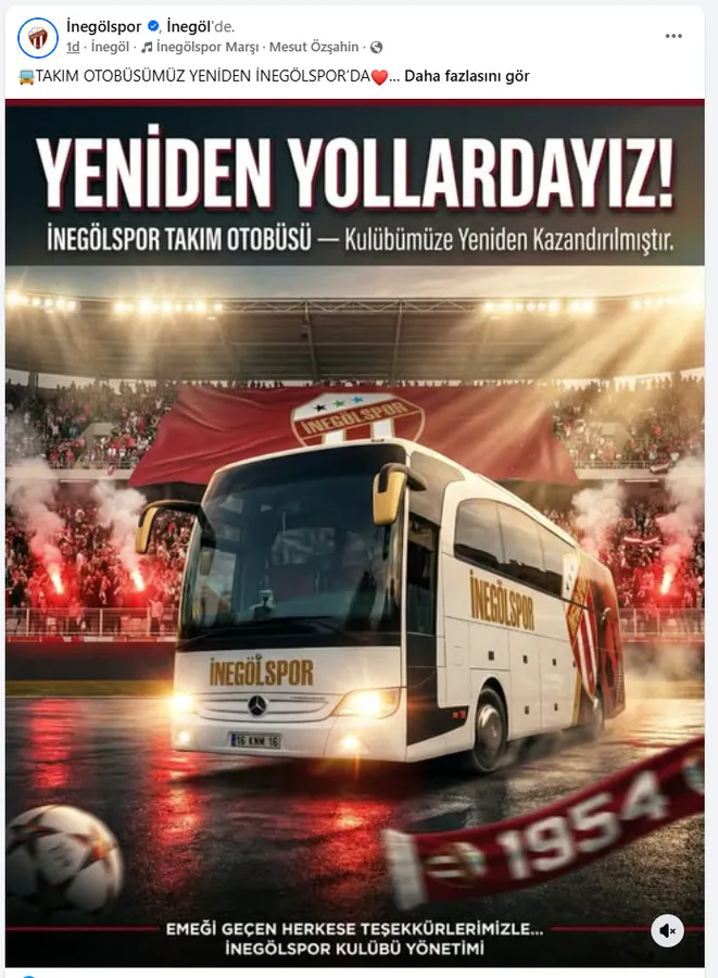 “İnegölspor bu şehrin ana kimliklerinden biridir. Önceliğimiz şehrimizin değerini korumak ve başarılarla dolu tarihimize yenilerini eklemektir. Bugün yeniden yola çıktık. Yarın daha güçlü bir İnegölspor olacak. Yeniden yollardayız.”