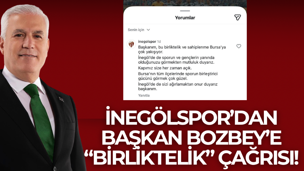 Bu paylaşıma anlamlı bir yorumla karşılık veren İnegölspor, sporun birleştirici gücünün yalnızca merkezde değil, Bursa’nın tüm ilçelerinde hissedilmesinin önemine dikkat çekti. İnegölspor resmi sosyal medya hesabı üzerinden yapılan yorumda, Başkan Bozbey’in spora ve gençlere verdiği desteğin kıymetli olduğu vurgulanarak, İnegöl’de de bu birlik ve beraberlik ruhunun yaşanmasından mutluluk duyulacağı ifade edildi.