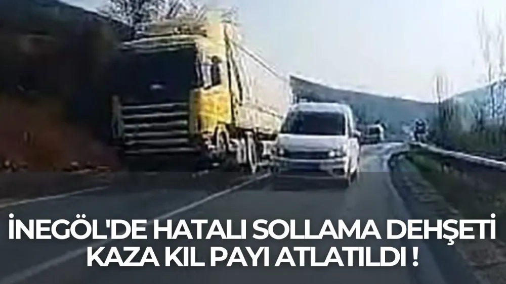 İnegöl'de hatalı sollama yapan bir araç nedeniyle büyük bir kaza tehlikesi yaşandı. İnegöl–Yenişehir yolu üzerinde meydana gelen olayda, sürücünün soğukkanlılığı olası bir faciayı önledi.