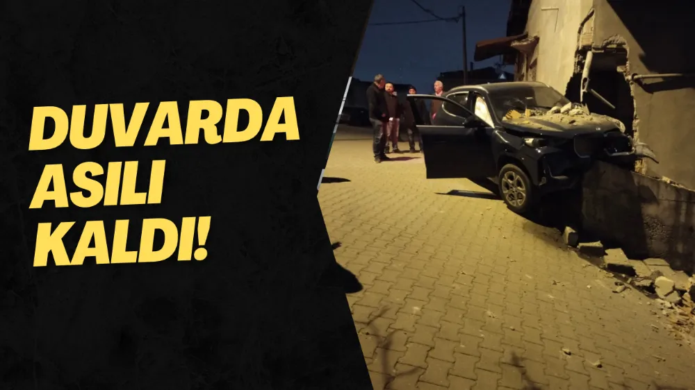 Gece saatlerinde sürücüsünün kontrolünden çıkan 34 YEY 88 plakalı BMW marka otomobil, bir evin istinat duvarına çarparak asılı kaldı. Evin duvarının kısmi olarak yıkıldığı kazada şans eseri yaralanan olmadı.