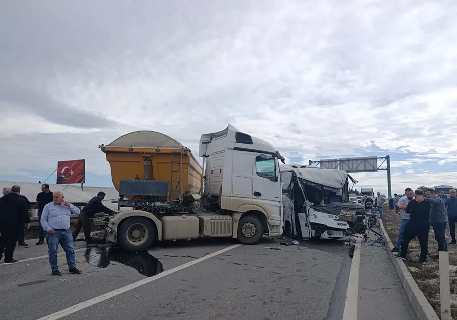 Kaza, Saray ilçesi Bağlar mevkiinde meydana geldi. Alınan bilgilere göre, ilçe çıkışında aynı yönde ilerleyen Mehmet N. idaresindeki 59 ANT 682 plakalı otomobil ile Haydar K. yönetimindeki 59 AEN 212 plakalı işçi servisi, iddiaya göre yol verme tartışması nedeniyle birbirlerini sıkıştırdı. Otomobilin manevrası sonucu minibüs karşı şeride geçerek, Fethi İ. yönetimindeki 06 EZS 136 plakalı silobas dorse tırla kafa kafaya çarpıştı.
