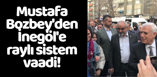 Mustafa Bozbey, CHP İnegöl Belediye Başkanı Ali Doğan, İlçe Başkanı Zemci Şahin ve meclis üyesi adayları İnegöl'de birtakım ziyaretler gerçekleştirdi. Bozbey'in ilk durağı Atatürk Bulvarı esnafı oldu, akabinde de pazartesi pazarını ziyaret etti. Son durağı ise İnegöl Alevi Kültür Derneği oldu. Ziyaretler esnasında vatandaşlarla hasbihal eden Bozbey, bir taraftan da seçim çalışmaları ve projeleriyle alakalı bilgiler verdi. İnegöl için 5G projeleri, sosya ve sanatsal projeler gibi başlıkları olduğunu aktaran Bozbey'in en dikkat çeken vaadi ise raylı sistem vaadi oldu. Bozbey seçilmesi durumunda İnegöl toplu taşımasına raylı sistem getireceğini ifade etti.
