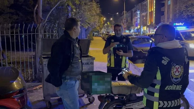 Edirne'de uygulama noktasından geçerken alkolün etkisiyle dengesini kaybedip yere düşen motosiklet sürücüsünün 1.94 promil alkollü olduğu belirlendi.