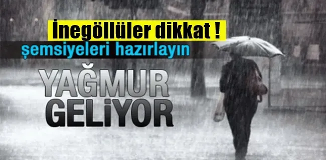 Meteoroloji bugün öğleden sonra İnegöl2de yağış geçişleri görülebileceğini açıkladı. Hava sıcaklığında önemli bir değişiklik beklenmezken yağış geçişlerinin önümüzdeki hafta aralıklara hafta genelinde etkili olacağı vurgulandı.