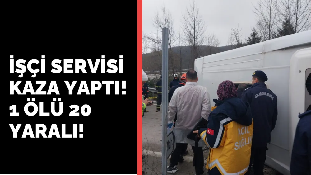 Alınan bilgiye göre, Bursa'nın Gemlik ilçesinden Yalova'nın Çiftlikköy ilçesindeki bir giyim markasının deposuna işçi taşıyan 77 plakalı servis midibüsü, Paşakent mevkiinde sürücü Ş.U.'nun direksiyon hakimiyetini kaybetmesi sonucu devrildi. Kadın işçi G.U.'nun (57) hayatını kaybettiği kazada yaralanan 20 kişi ise Yalova Eğitim ve Araştırma Hastanesi ve bölgedeki hastanelere kaldırıldı. Yalova Valisi Ahmet Hamdi Usta olay yerine giderek bilgi aldı.