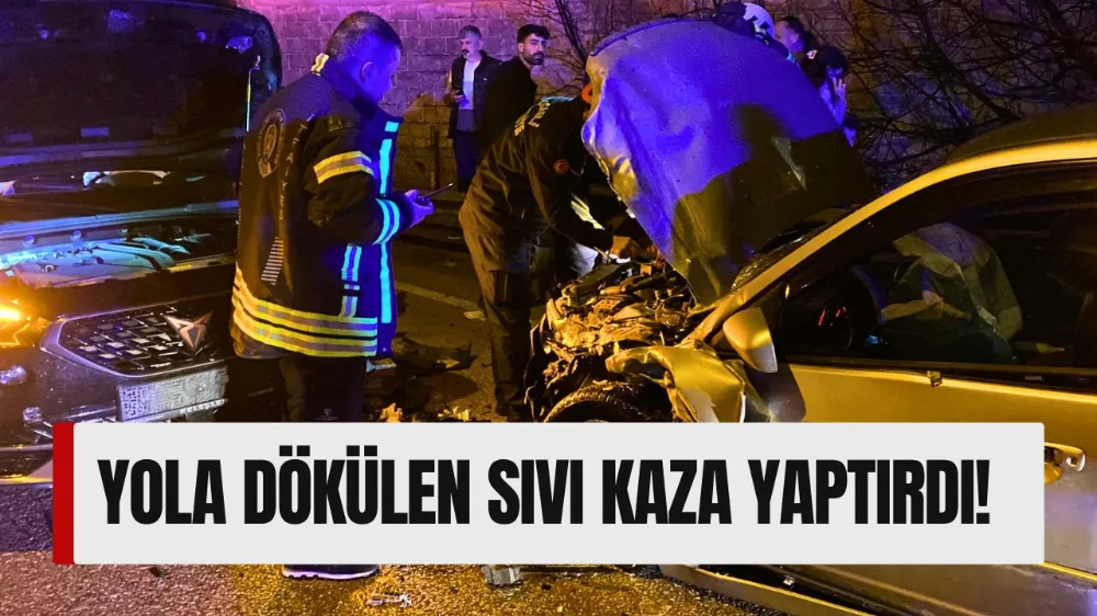 Yere dökülen sıvı nedeniyle kayganlaşan yolda iki otomobilin kafa kafaya çarpışması sonucu 3 kişi yaralandı.
