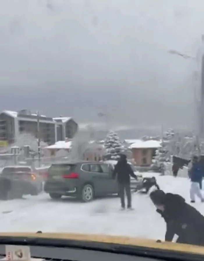 Yoğun kar yağışı nedeniyle kontrolden çıkan bir otomobil, kayarak yolda bulunan vatandaşların üzerine doğru ilerledi. Büyük panik yaşayan vatandaşlar, kendilerini son anda kenara atarak kurtuldu.