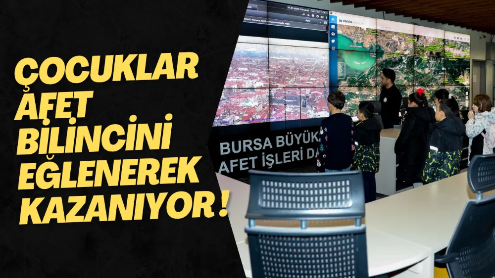 Bursa Büyükşehir Belediyesi Afet Koordinasyon Merkezi (AKOM) ve Bursa Kent Konseyi Çocuk Meclisi birlikteliğiyle Atatürk Kültür Merkezi Merinos Yerleşkesi Kent Konseyi Çınar Salon’da düzenlenen etkinlikte çocuklara, afet öncesi, afet anı ve sonrası için güvenli yaşam becerileri kazandırılması hedeflendi. AKOM yetkilileri tarafından çocuklara, afet nedir, afetlere karşı alınabilecek önlemler nelerdir, deprem nedir gibi soruların yanıtları verilirken, depreme hazırlık, deprem sırasında ve sonrasında yapılması gereken doğru davranışlar eğitici ve uygulamalı çalışmalarla aktarıldı.