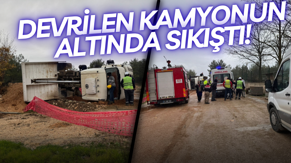 Devrilen kamyonda sıkışan sürücüsü yaralandı
