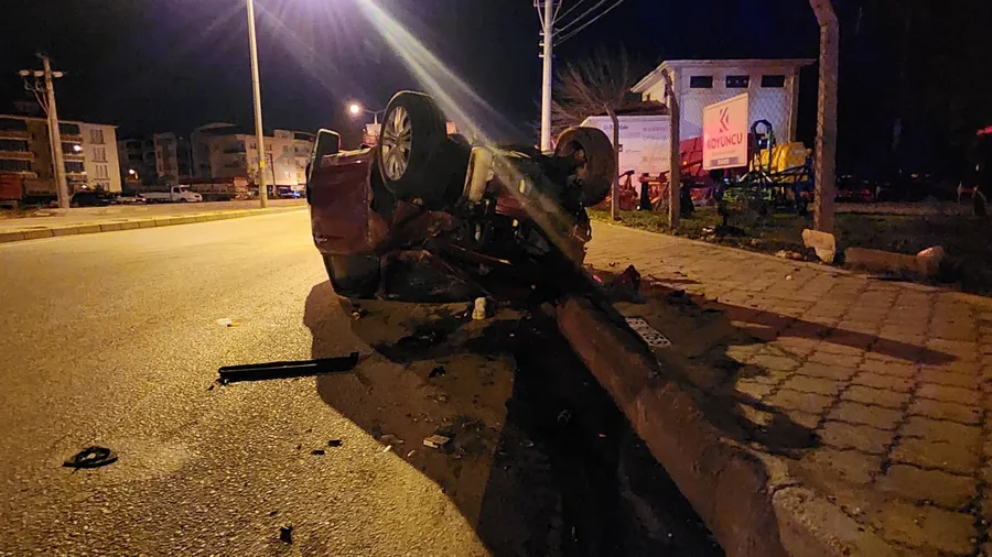Olay, Bursa'nın Mustafakemalpaşa ilçesinde meydana geldi. Edinilen bilgiye göre, ilçe merkezi istikametine seyir halindeki 16 PU 058 otomobil sürücüsü hızı sebebiyle direksiyon hakimiyetini kaybetti. Aynı istikametteki 16 EHU 57 plakalı kamyonete çarpmasıyla ortalık savaş alanına döndü. Otomobil takla atıp sürüklenirken, kamyonetin savrulmayla çarptığı trafik ışığı da yola devrildi.