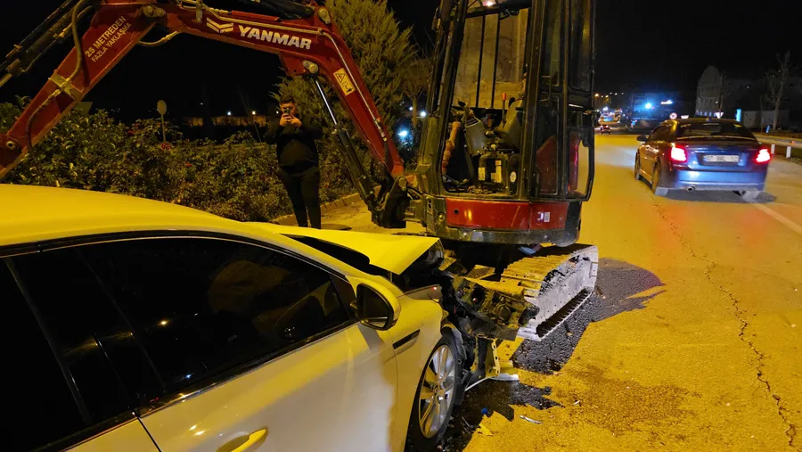 Bursa’nın İnegöl ilçesi FSM Bulvarı Kavşağı, Yeniceköy Mahallesi istikameti köprü üzerinde meydana gelen kazada, yol kenarında drenaj çalışması yapan ekskavatöre otomobilin çarpması sonucu operatör yaralandı.