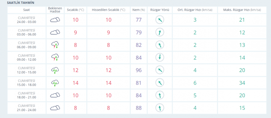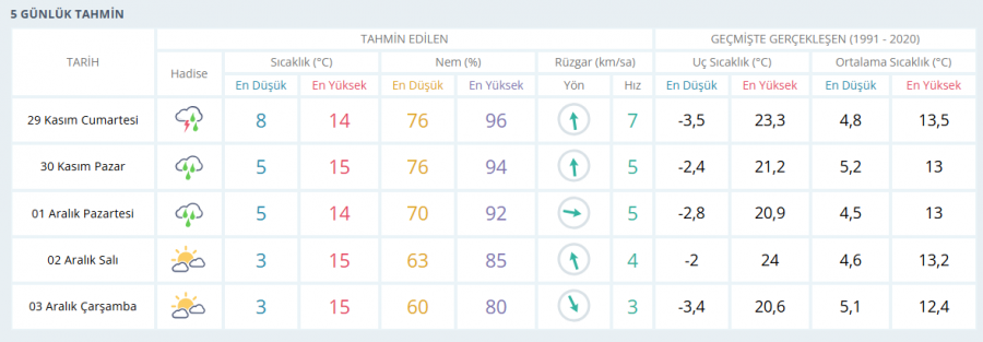 29 Kasım Cumartesi: Cumartesi günü Bursa'da yağışlar başlıyor. Sıcaklıklar 14 dereceye kadar düşüyor.