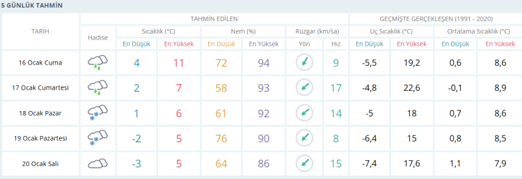 İŞTE BURSA İÇİN 5 GÜNLÜK HAVA DURUMU TAHMİNİ (16 OCAK 2025)